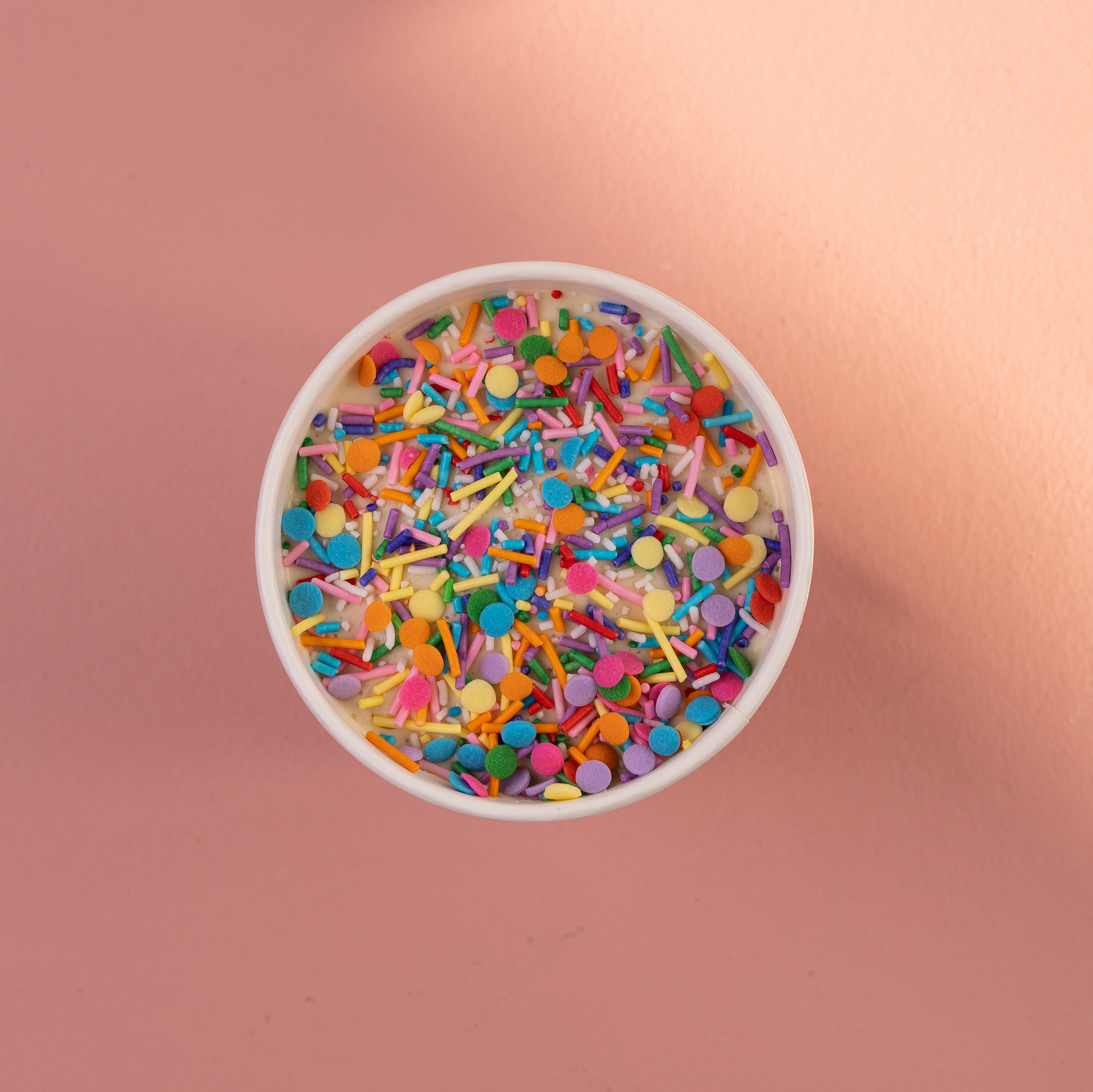 -Birthday Cake – A celebration in every scoop. Rich vanilla gelato swirled with real cake pieces and rainbow sprinkles.
