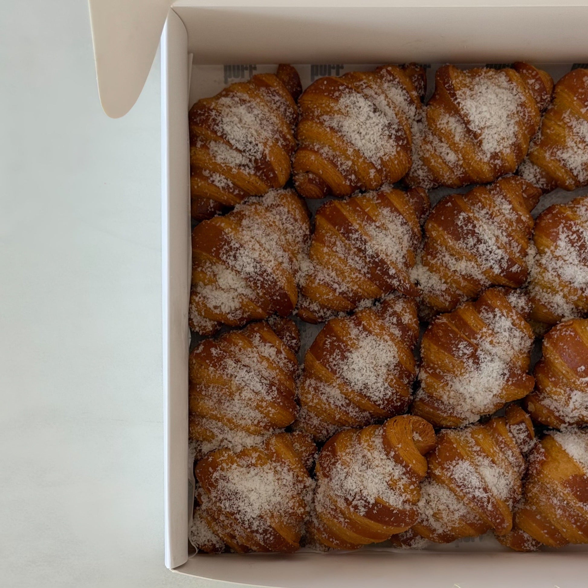 A gathering box of 20 mini Muhalla Croissants, perfect for a gathering.