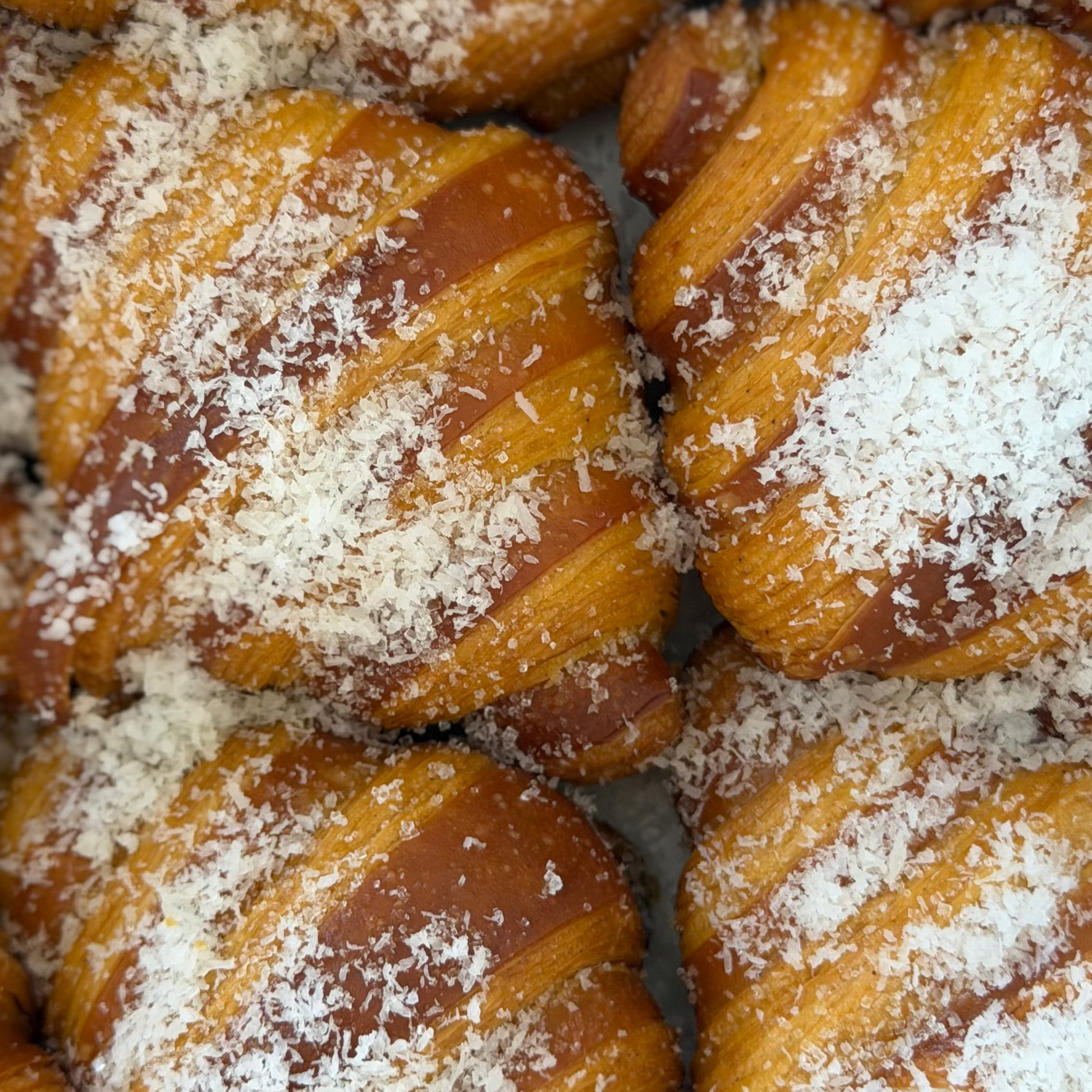Soft, saffron-infused layers filled with creamy cheese, and finished with a touch of coconut and sugar. A perfect blend of Emirati warmth and French indulgence.